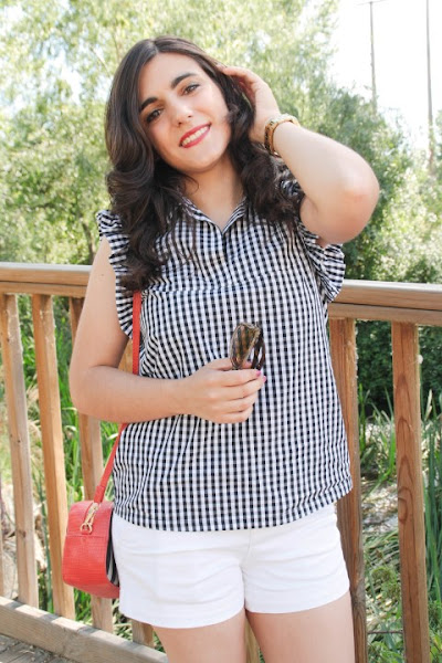 Mi combinación ganadora es un match de esta blusita con volantes con mis shorts chinos blancos favoritos. Juntos forman un outfit clásico, con buen gusto, muy cómodo y femenino. Al conjunto le añadí mis sandalias favoritas, que son las más cómodas que tengo, y un bolso de Parfois que me regalaron en mi cumpleaños del año pasado y siempre me ha resultado difícil de combinar por sus colores y sus rayas.