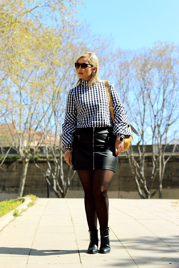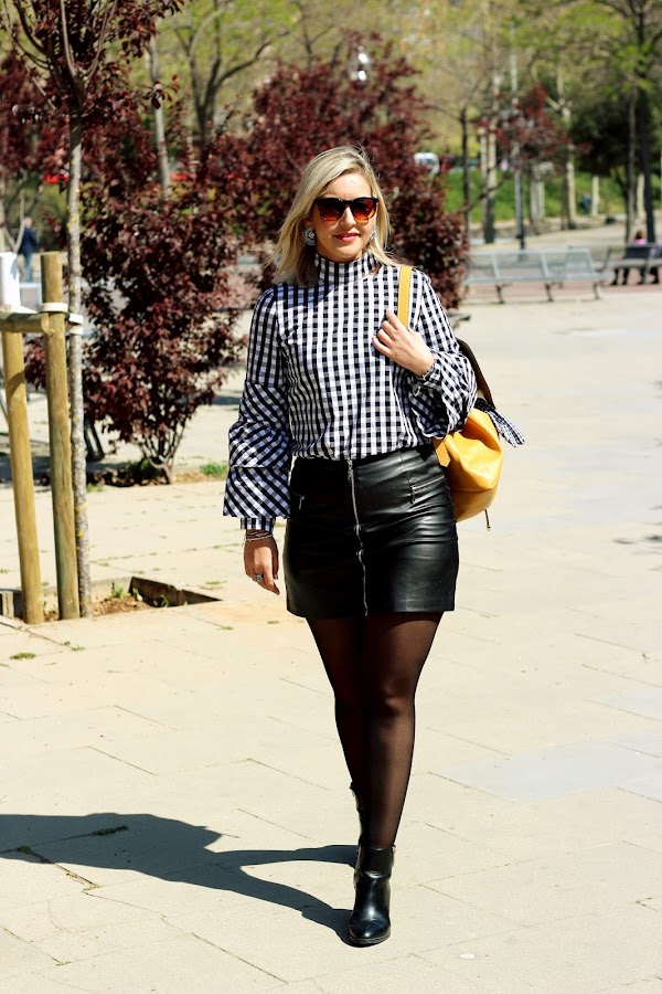 Today I show you an outfit with a shirt of Sammydress that has this two trends. At one hand, its a gingham shirt, but the detail that more liked me was the sleeves with ruffles that gives a different touch to a simply shirt. I wear it with a black leather skirt, black booties and my new yellow bag that gives a touch of color to the black & white outfit.