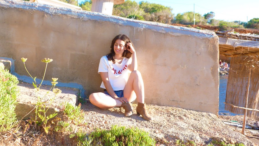 En el post de hoy me gustaría enseñaros un look que tenía pendiente de enseñaros en colaboración con la tienda Ibiza Smiles. Tienen prendas que seguro que os encantarán, os dejo el enlace para que vayáis fichando :P El look es, una vez más, sencillo y lo más. Los mensajes en las camisetas, tops, chaquetas están al orden del día y yo no podía ser que no me hiciera con una, en este caso un top crop.En cuanto lo vi tuve un flechazo con ella. Combiné la camiseta con unos shorts y una botas para darle más fuerza y rollo al look. ¿ Qué os parece?