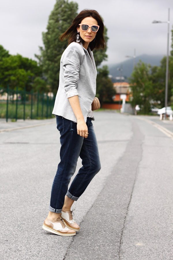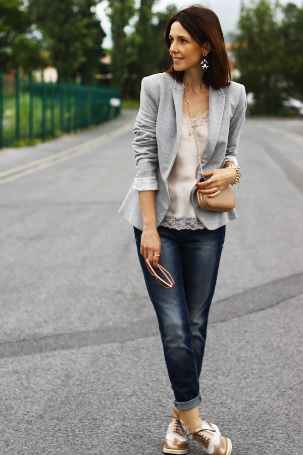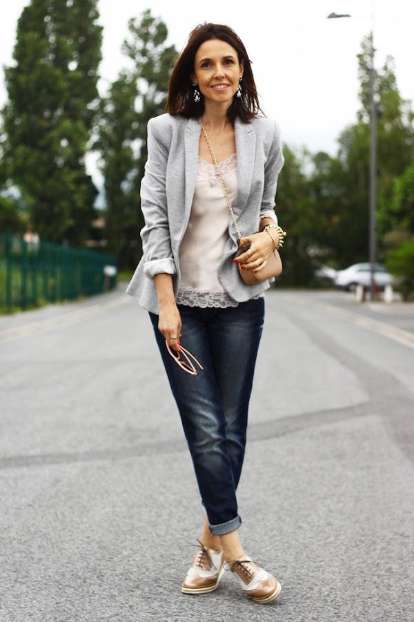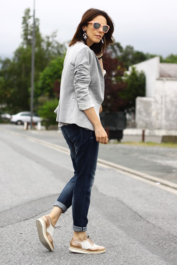 El otro día me compré este vaquero, unos girlfriend jeans, y yo me pregunto... ¿cuál es la diferencia entre los boyfriend y un girlfriend jeans? Se supone que el girlfriend es más femenino... sinceramente los veo bastante parecidos, así que, se llamen como se llamen me los compro por que me encantan! Sí he de decir que creo que este sienta algo mejor de culo que los boyfriend que tengo! Combinados con un top lencero (y bien lencero porque de hecho es interior) y unos zapatos con el toque masculino, volvemos a las mezclas raras a las que últimamente me estoy aficionando. ¿Qué os parece?