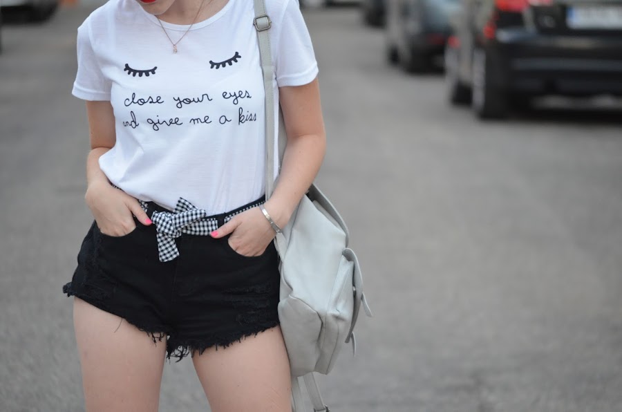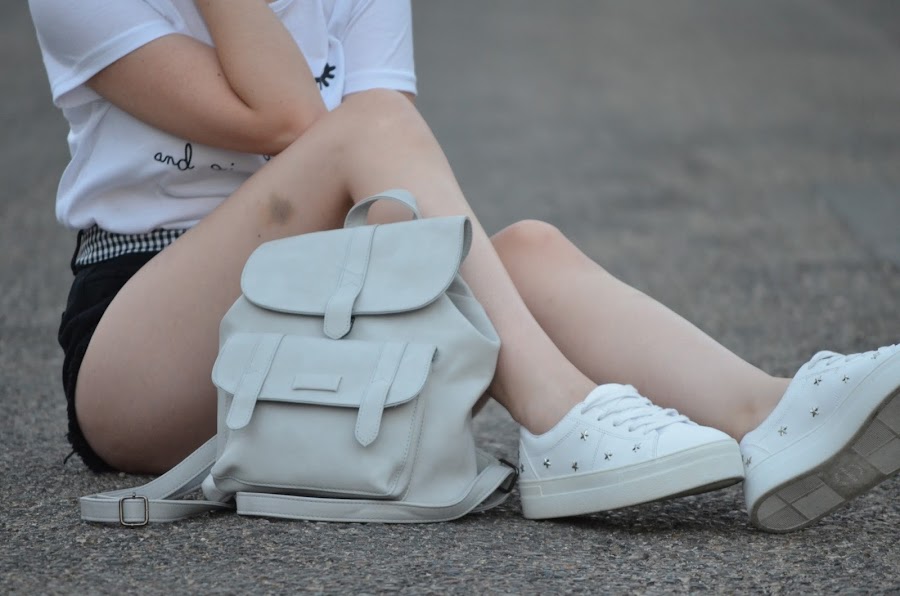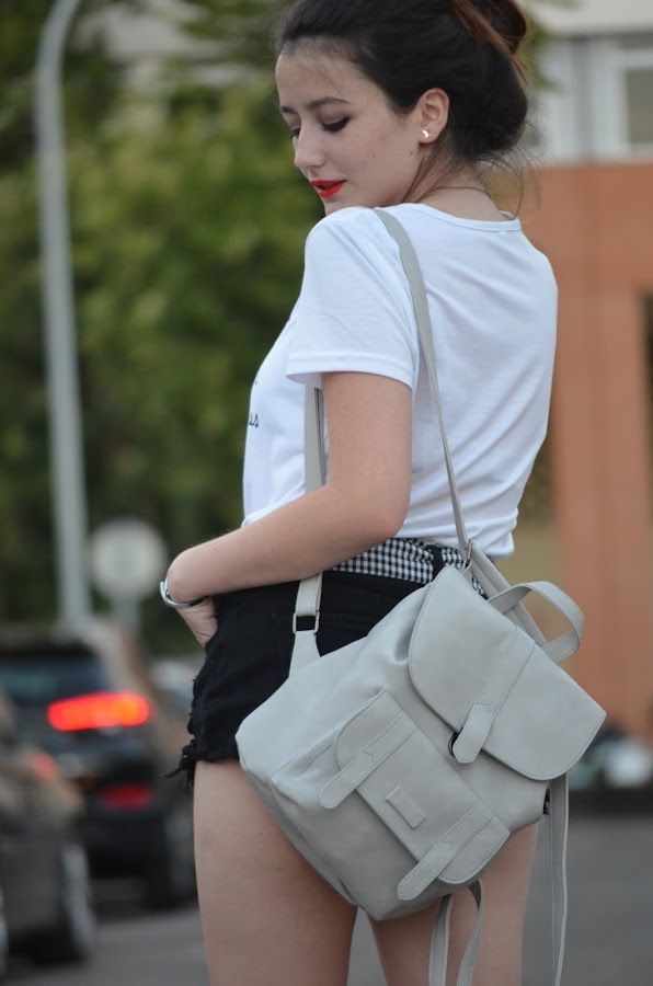 Cada día va aumentando mi colección de shorts rotos como éstos de Romwe q y es que como sabéis son mis preferidos pues no me gustan para nada los de corte recto. Opté por una camiseta básica con frase, mi nueva mochila en color gris de la web NewChic y mis nuevas sneakers de Pull&Bear que pillé en las rebajas por tan solo 9,99. Para añadirle algún estampado al look escogí este pañuelo como cinturón con cuadros vichy. ¿Qué os parece?