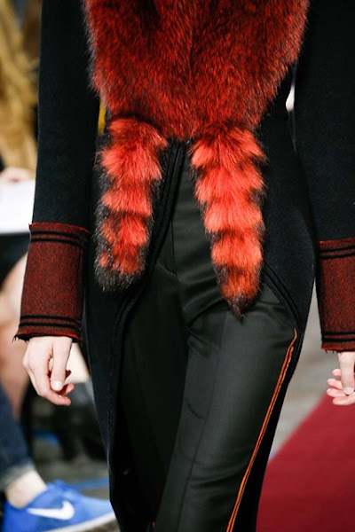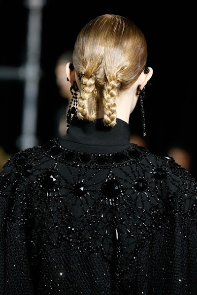 Riccardo Tisci dijo alguna vez que clave del éxito para cualquier diseñador es tener una identidad. Podemos ver la hermosa creatividad e identidad de Givenchy en su colección Otoño-Invierno. (A pesar de que esta pasarela es destinada para Otoño-Invierno 2015 no pude esperar más para hacer el post). Enormes piercings en la nariz, "piercings" (colocados con pegamento especial) en las mejillas y una dramática decoración en las orejas acompañados con trenzas y rizos son parte de esta original colección.