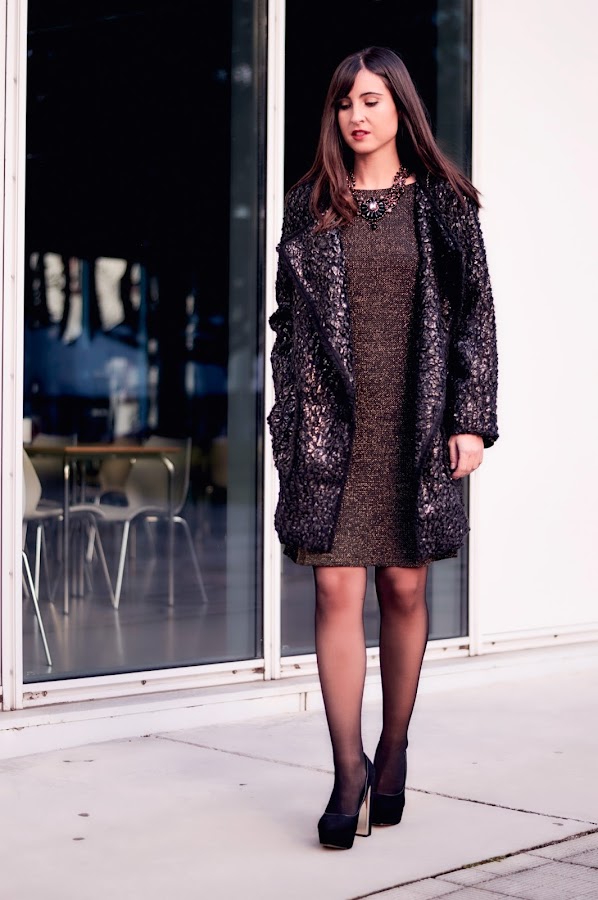 Vestido, bolso, abrigo: Sfera/ Zapatos: MaryPaz / Joyas: Atempo