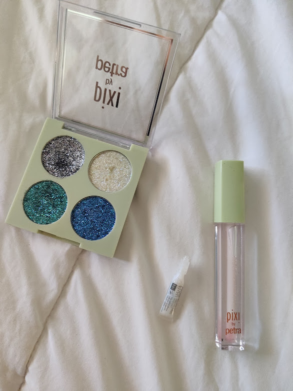 De izq a drch, All Nigther, Pegamento de pestañas de Better y gloss transparente de Pixi.
