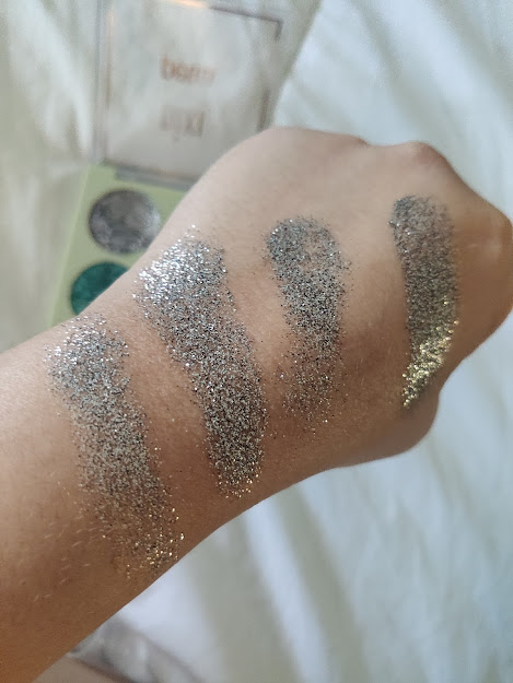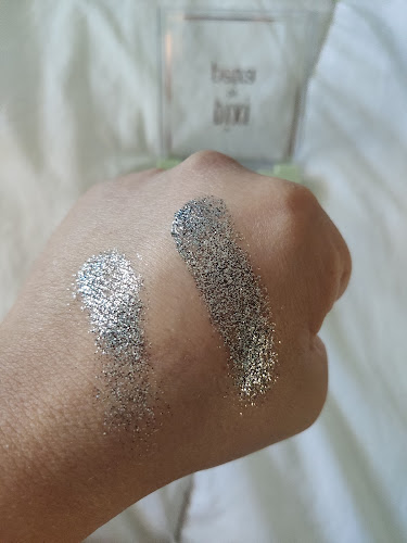 Este primer es más para sombras que glitter, pero como véis (el swtch de la izq) es una forma "low cost" de trabajarlo. No queda tan bien como con los productos de alta gama y queda más difuminado. Puede daros el apaño peeeero si tenéis medios para usar un producto más específico os recomendo otra cosa.