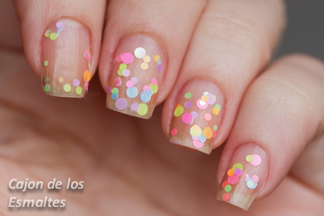 Y empezamos la semana con la última reseña pendiente de productos de la tienda BornPretty store de nail art. La verdad que estoy super contenta con la calidad de los productos que me enviaron en este lote. Hoy tengo para mostrarles una cajita de glitter redondos, neones y maravilla de los dioses, resistentes al solvente. ¿Qué significa esto?...que podemos usarlos para crear nuestros propios esmaltes combinando por ejemplo el glitter con un clásico blanco transparente (via láctea por estos lares) sin que este destiña y quede sin color al poco tiempo. Hice las prueba durante dos semanas antes de sacar las fotos y tal como ven abajo apenas manchó un poco de rosado el blanco, y el color del glitter quedó intacto.