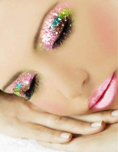 Me encanta el glitter en el makeup!En Puerto Rico le dicen blinbineo o blin- blin.Asi que fui a pinterest a ver que habia de glitter.Y encontre par de fotos bien chulas.
