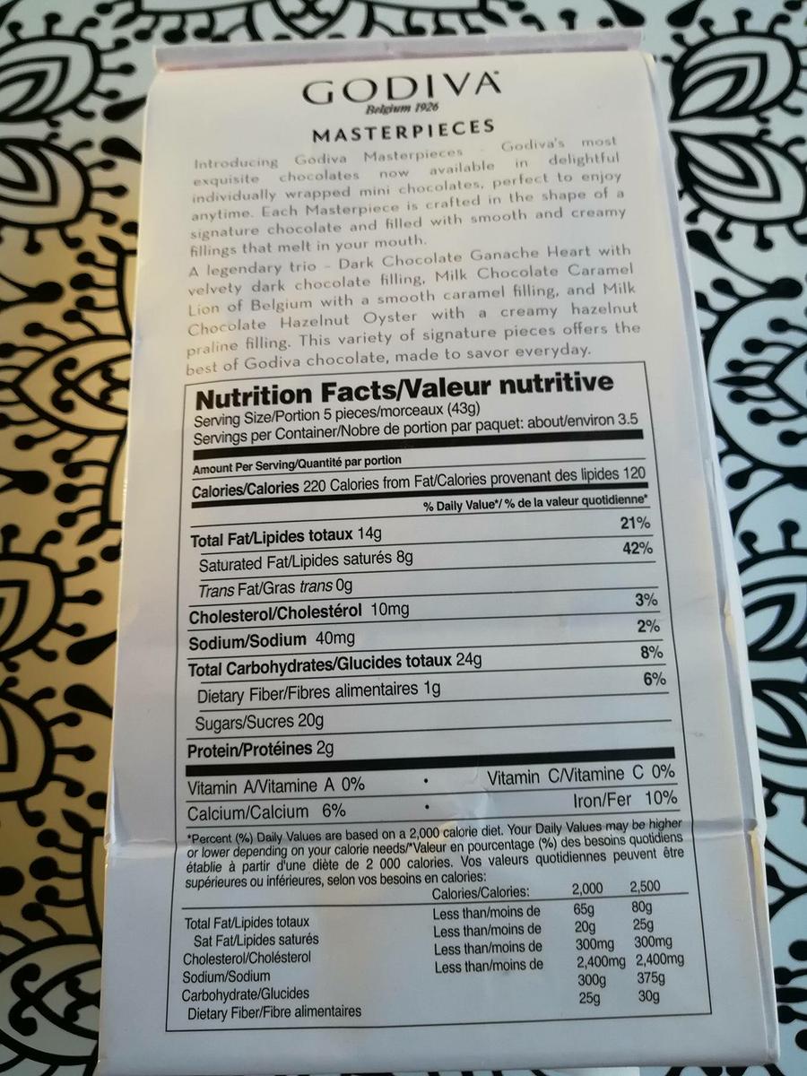 Esta vez recibí gratuitamente de influenster los chocolates marca Godiva masterpieces, para probarlos y dar una reseña honesta, venia una bolsa grande, para mi era grande, venían 18 chocolates o mini chocolates, debo decir que para mi el tamaño no era mini es un tamaño adecuado, cada chocolate venia envuelto en paquetes individuales, la presentación de la bolsa es practica y los chocolates en paquetes individuales son una gran idea ya que se pueden llevar a todos lados.