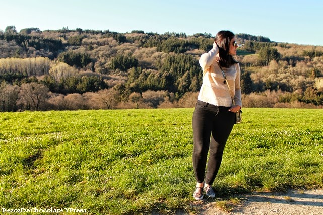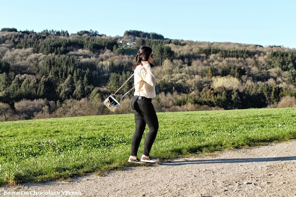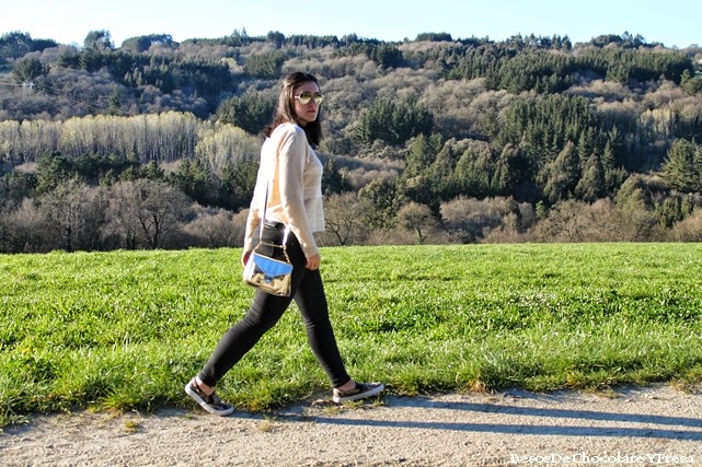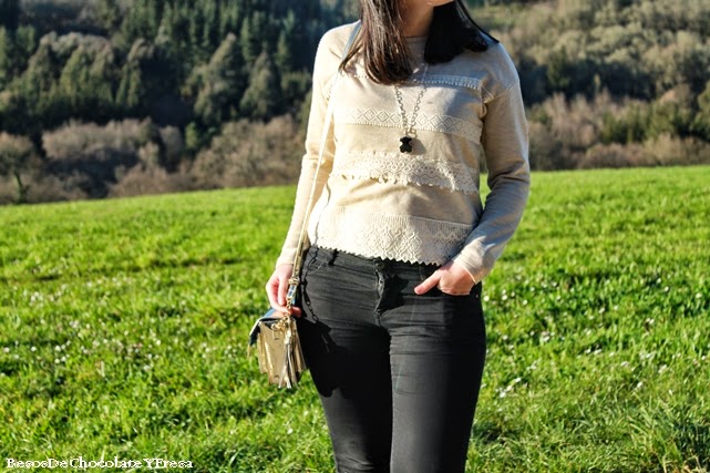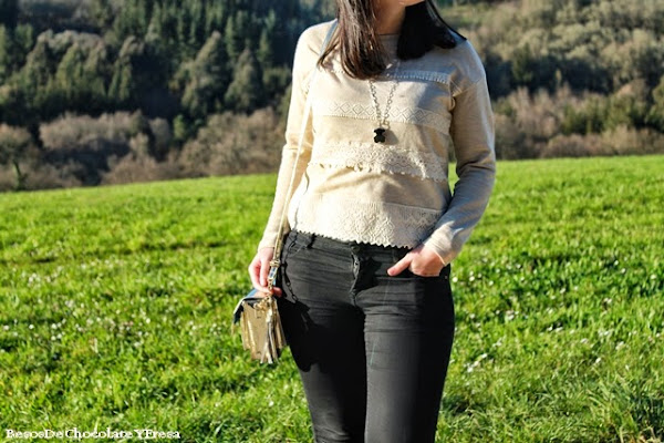 Para dar un paseo, gracias a estos días soleados que estamos teniendo y con buenas temperaturas opté por un look cómodo. Llevo jeans negros con sweater nude con encajes, slip-on con print de serpiente y collar de Tous.