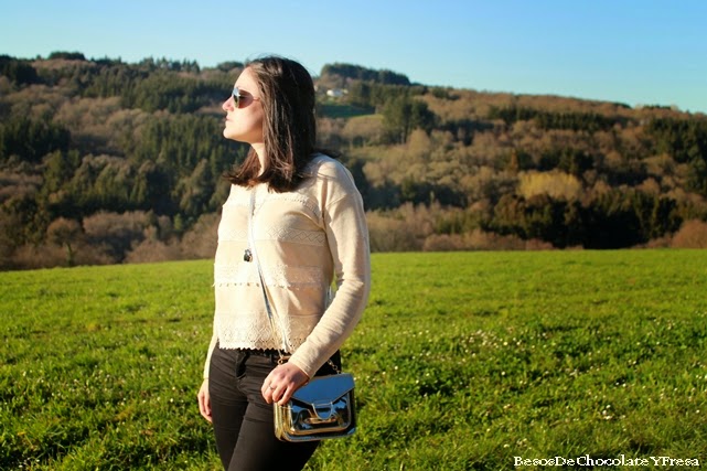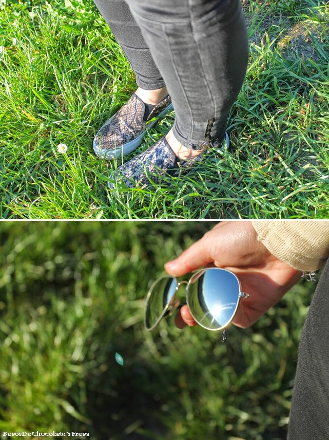To take a walk through these sunny days we are having good temperatures and opted for a comfortable look. Wear jeans with nude black sweater with lace, slip-on with snake print and Tous necklace.