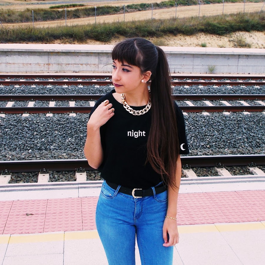 Hoy os traigo un nuevo post con prendas que tenía muchas ganas de enseñaros, ya que siguen un estilo "muy yo" y creo que eso se nota en las fotos . Gracias a SAMMYDRESS, por esta camiseta que me fascina acompañada de un collar de cadena y anillos ambos dorados que complementan muy bien al outfit. Para completar un look casual, cinturón de hebilla negro, jeans y mis queridas Airmax Blancas, que aciertan con todo.