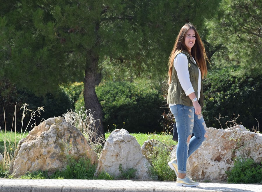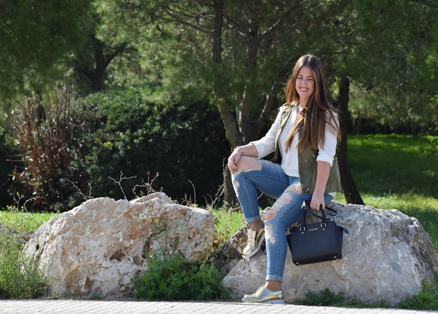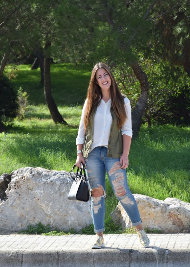 Good morning!! Finally its friday and I celebrate it with special shoes. I like classic shoes, like orford, of different colours, like this in gold. Lately, I wear it a lot haha. As I want they where the protagonists of the look I combined with basic clothes, jeans and white shirt, one of my favourite combinations! What do you think? Enjoy a lot the friday!