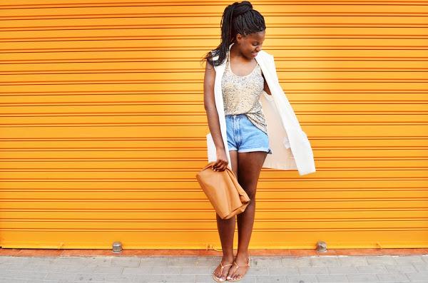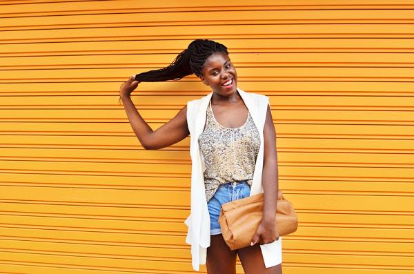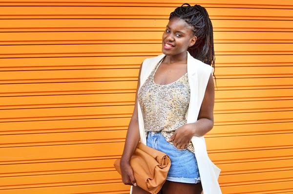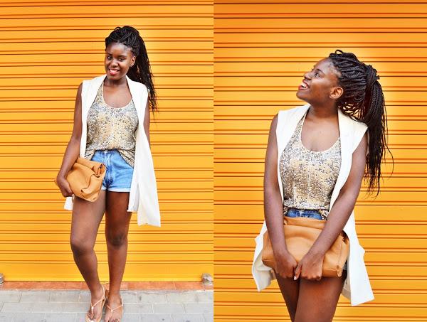 Chaleco Largo: Pull and Bear (Sales)(SIMILAR HERE) / Camiseta lentejuelas: Bershka (old)(SIMILAR HERE) / Clutch: Zara(old) /Sandalias: Primark(old)