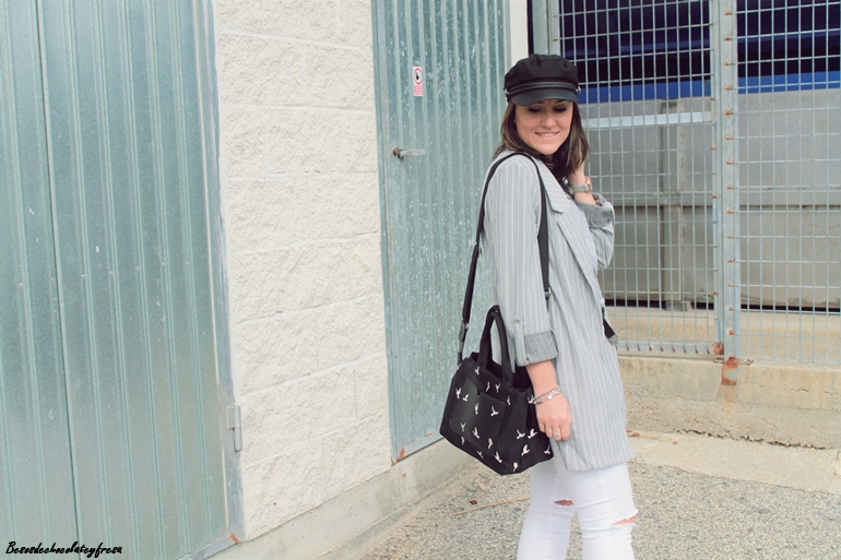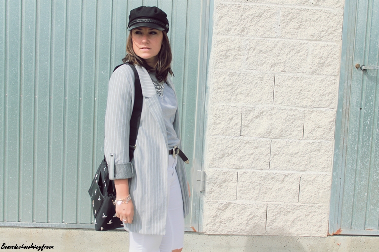 Hoy os muestro un look con este complemento que adquirí hace escasos días en H&M, de hecho cuando fui en su busca, pensé que estaría agotada en las tallas pequeñas, pues la hay en tres tallas, S (54), M (56) y L (58). Pero ahí estaba solita y llamándome jeje. Además el detalle de polipiel en la ala y el entrenzado la hacen especial.