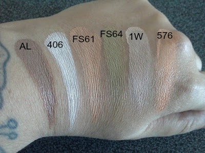 Los tonos salmón (576) y verde (FS64) se pueden utilizar también como pre-correctores.