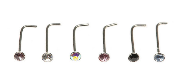 Inicialmente buscaba algo muy simple: un piercing discreto, en forma de "L", con un brillante negro y de un material que no me diese alergia, idealmente plata. No encontré exactamente lo que buscaba, pero llamó mi atención en Claires un pack de 6 piercings de plata a un precio bastante económico (9,95 euros) con brillantes de colores variados, entre ellos el negro.