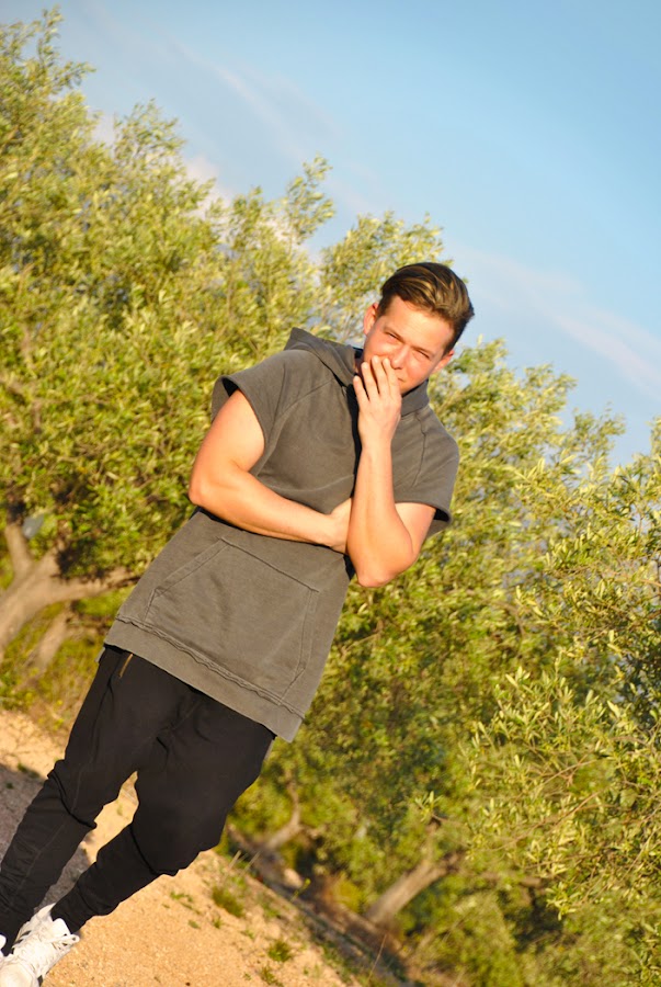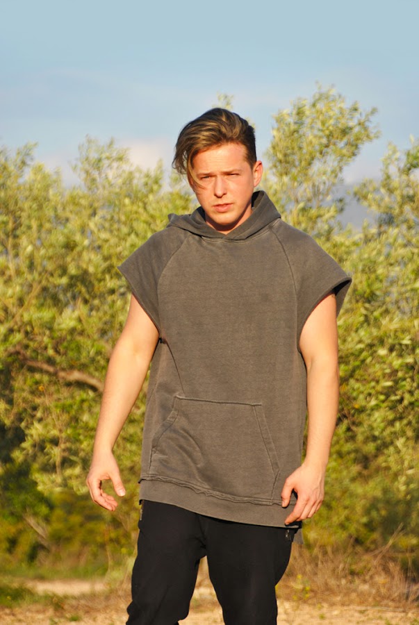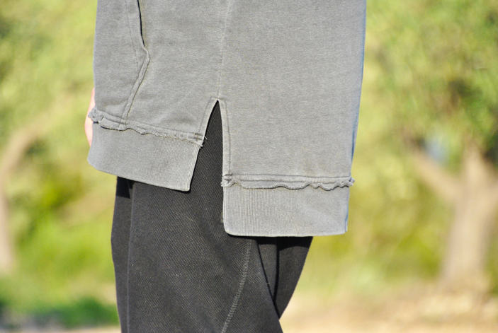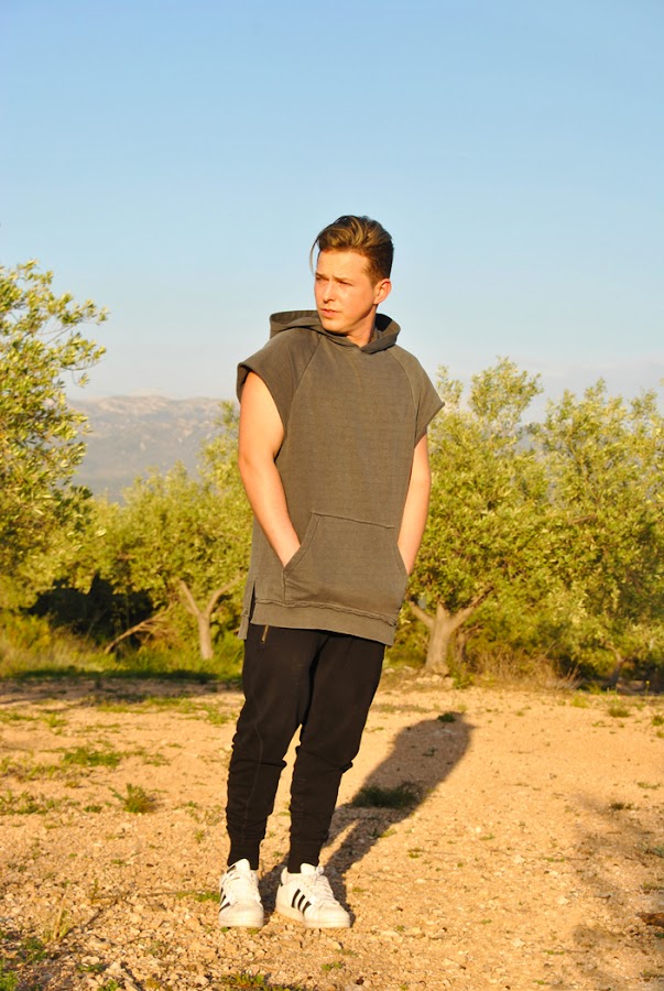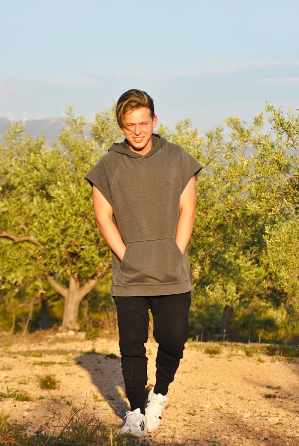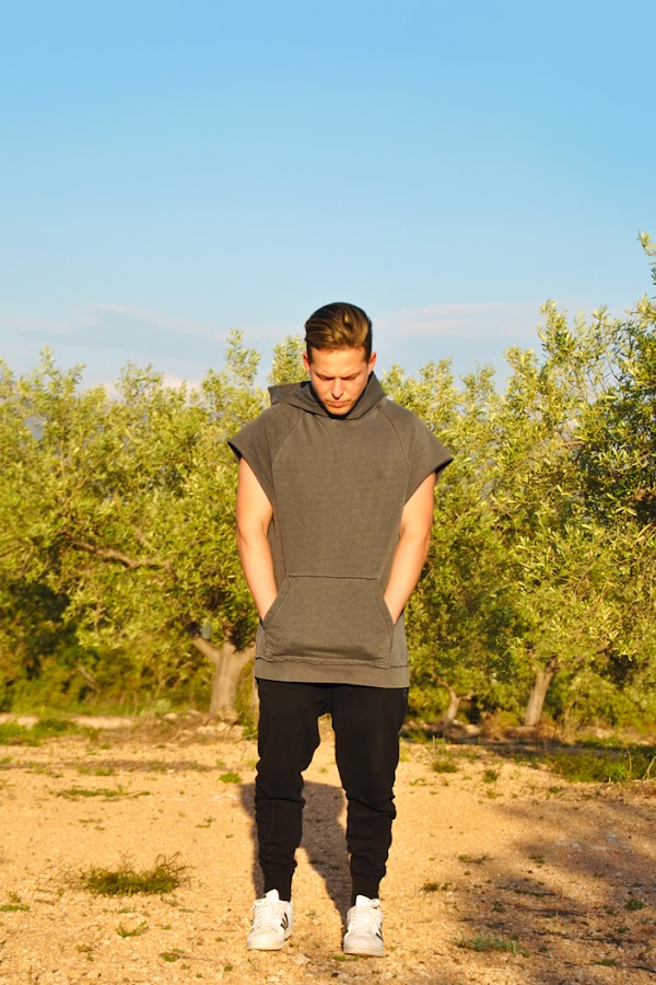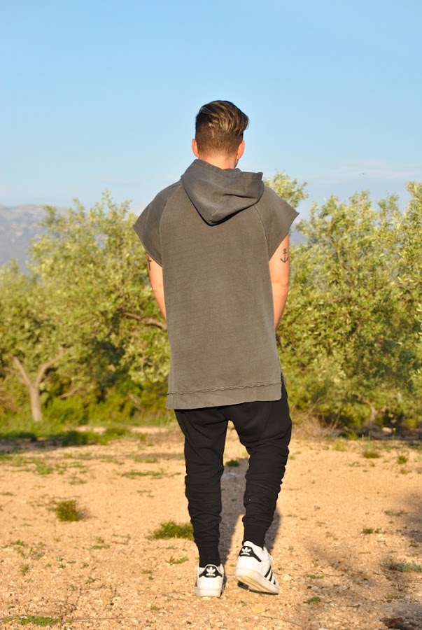 Las fotos del look las tomamos allí mismo, llevo una camiseta sin mangas de corte largo y ancha con capucha de la línea DIVIDED de H&M y unos pantalones de chándal de Bershka con pierna estrecha y muy ancho arriba que son súper cómodos!