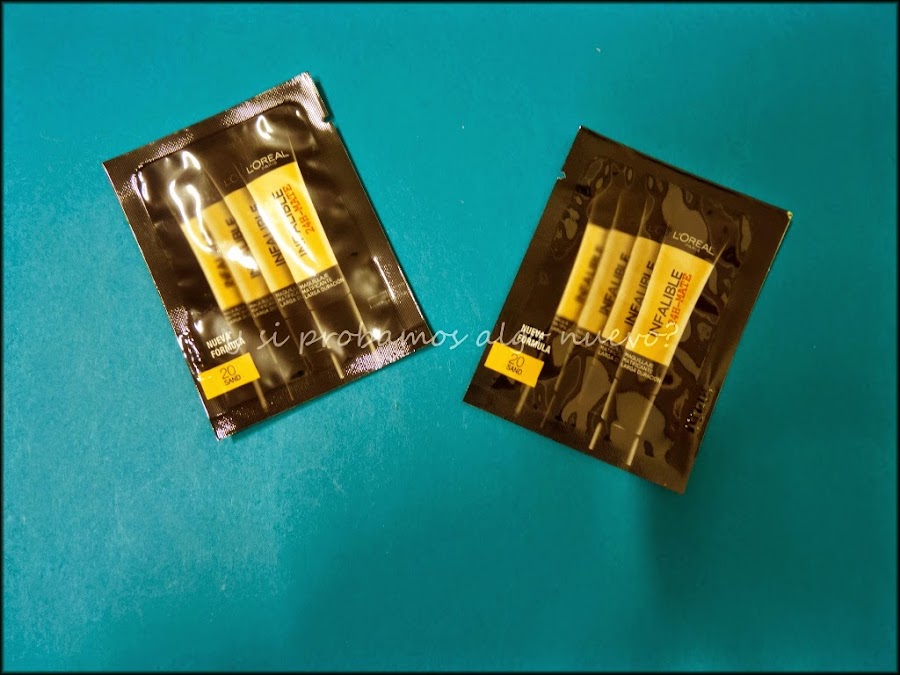 Estas muestras las cogí de unas revistas. No me ha gustado mucho creo que no es para mi tipo de piel, me reseca mucho. Es el maquillaje Infalible de Lóreal.