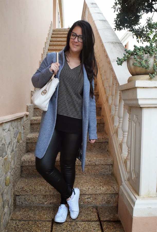 Hola a todos! hoy un poco más tarde de lo habitual pero aquí tenéis el post de hoy, un look normal, perfecto para ir a trabajar, dar un paseo o ir de compras. Estos pantalones de "piel" no me los quito, me encantan con todo (me recuerdo a Jim Morrison jajaja), esta vez combinado con camiseta de rayas, mi nuevo abrigo de las rebajas y mi nuevo bolso, también de las rebajas. Como ya habréis visto en mi instagram (@bubblesandwindmills) no he comprado muchas cosas, me he portado muy muy bien jajaja. Y vosotros, habéis comprado mucho??