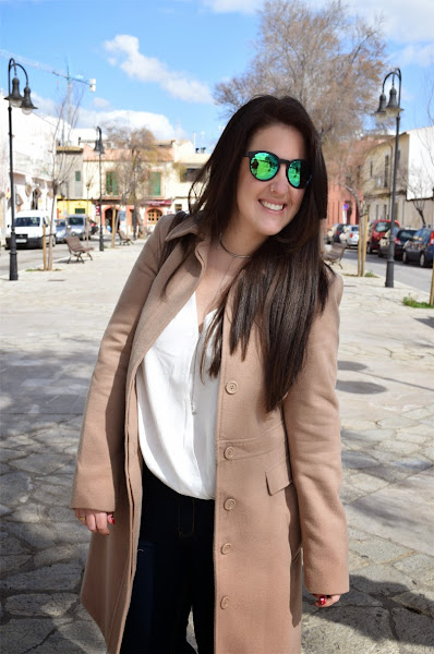 Buenos días y Feliz Viernes! El otro día fui a desayunar con dos amigas y bloggers de la isla (Carol de Allandmore y Alba de cenicientamoderna) al Portitxol, uno de mis sitios favoritos cuando hace buen tiempo y aprovechamos para hacernos fotos. Escogí un look sencillo con vaqueros, camisa blanca, abrigo camel y botines con flecos del mismo tono, para contrastar mis nuevas gafas de cristal espejado, le dan un toque menos serio al look, además son muy ligeras y la forma me encanta, seguro que las veréis mucho más por aquí jeje. Espero que os guste!!