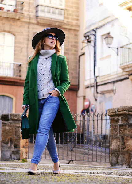 Green coat: Tintoretto / Bag: Parfois / Hat: Unit / Shoes: Bershka / Jeans: Mango