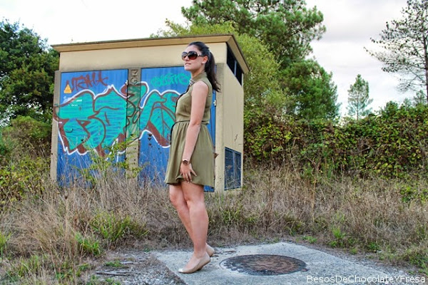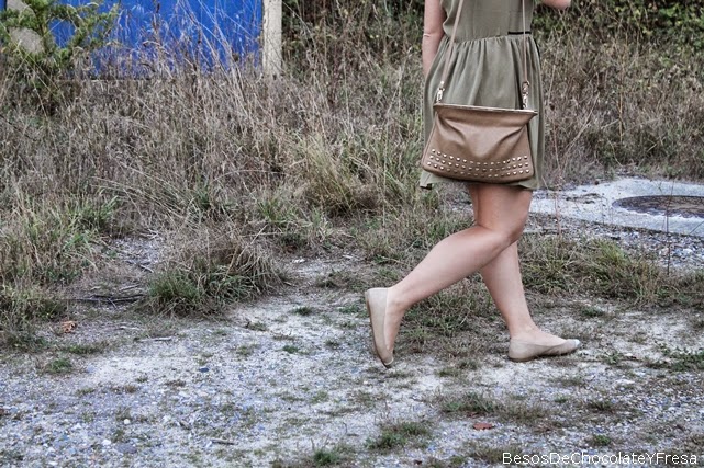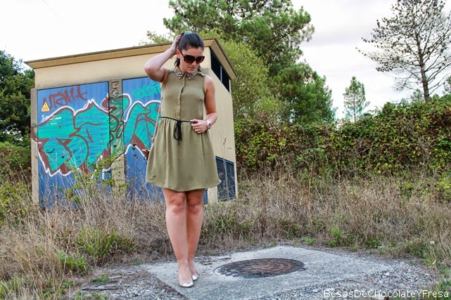 Teach you a look that I got last Friday to do a few errands. I dress in khaki green of pearls and belt in black, which can be both forward and backward. As complements everything in the nude, bag, dancers and watch.