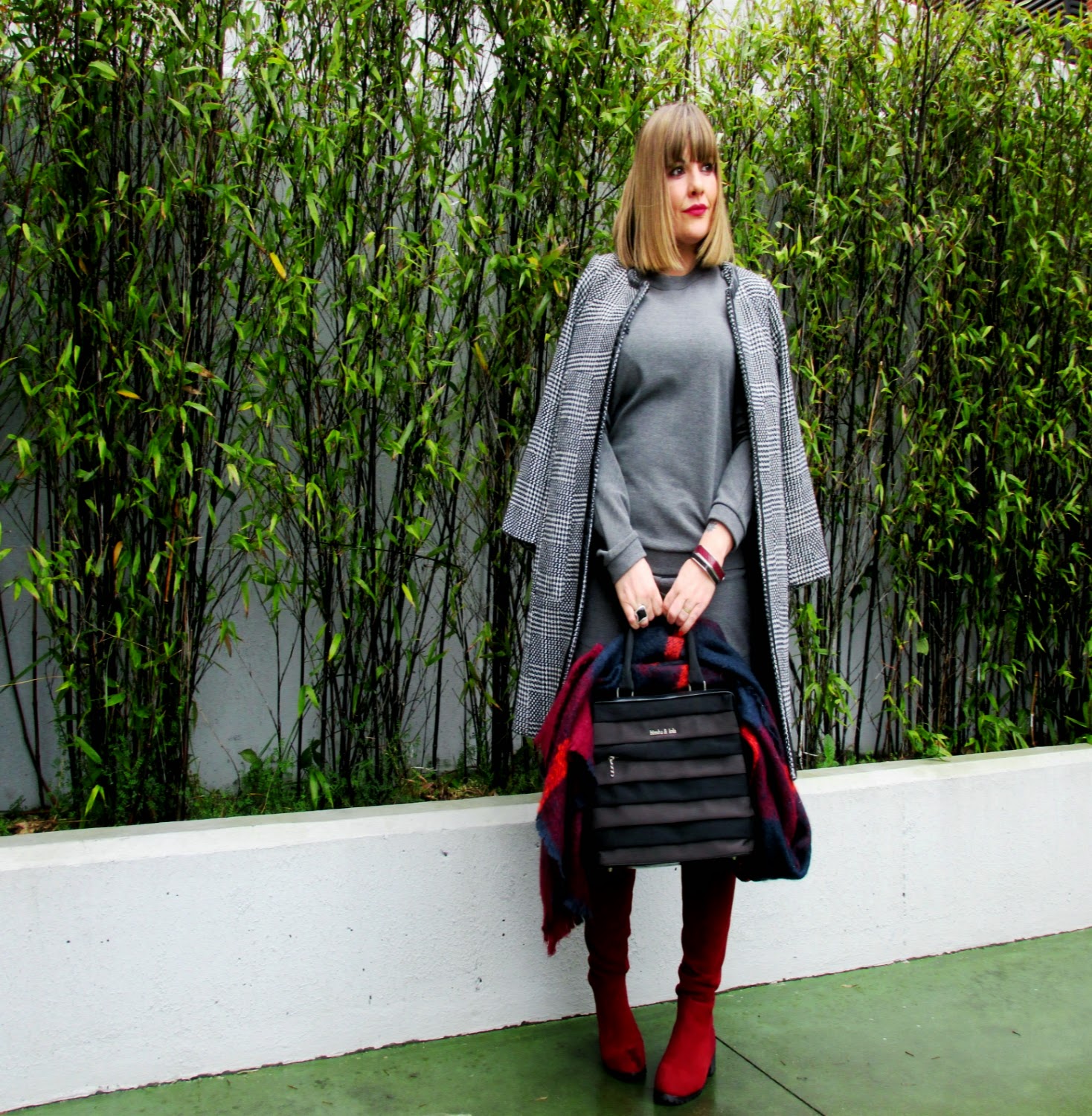 Ya es viernes, por fin!. Esta semana se me ha hecho larguísima y supongo que ha sido por el tiempo tan horrible que hemos tenido casi con ningún respiro sin lluvia y con muchísimo frío. En uno de esos huecos he tenido un momento para hacer unas fotos y mostraros otra de mis compras en rebajas, este precioso y sobre todo ponible mono. En verano ya fue una prenda que utilicé muchísimo y al ver este modelo perfecto para la estación actual me enamoré, así que probé suerte y esperé a las rebajas. En esta ocasión lo utilicé para ir a trabajar así que me decanté por un look sencillo con tonos grises y complementos granate. Las botas que ya os mostré en otra ocasión vienen genial para estos días y el bolso, que ya tiene muchos años, es perfecto para la lluvia porque no se estropea. De todas formas se me ocurren miles de conbinaciones diferentes para el mono, así que seguro que lo vereis mucha mas veces.