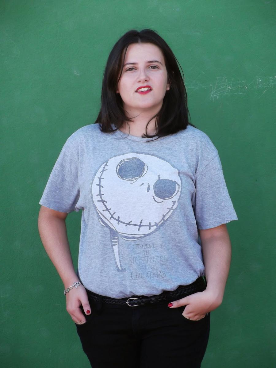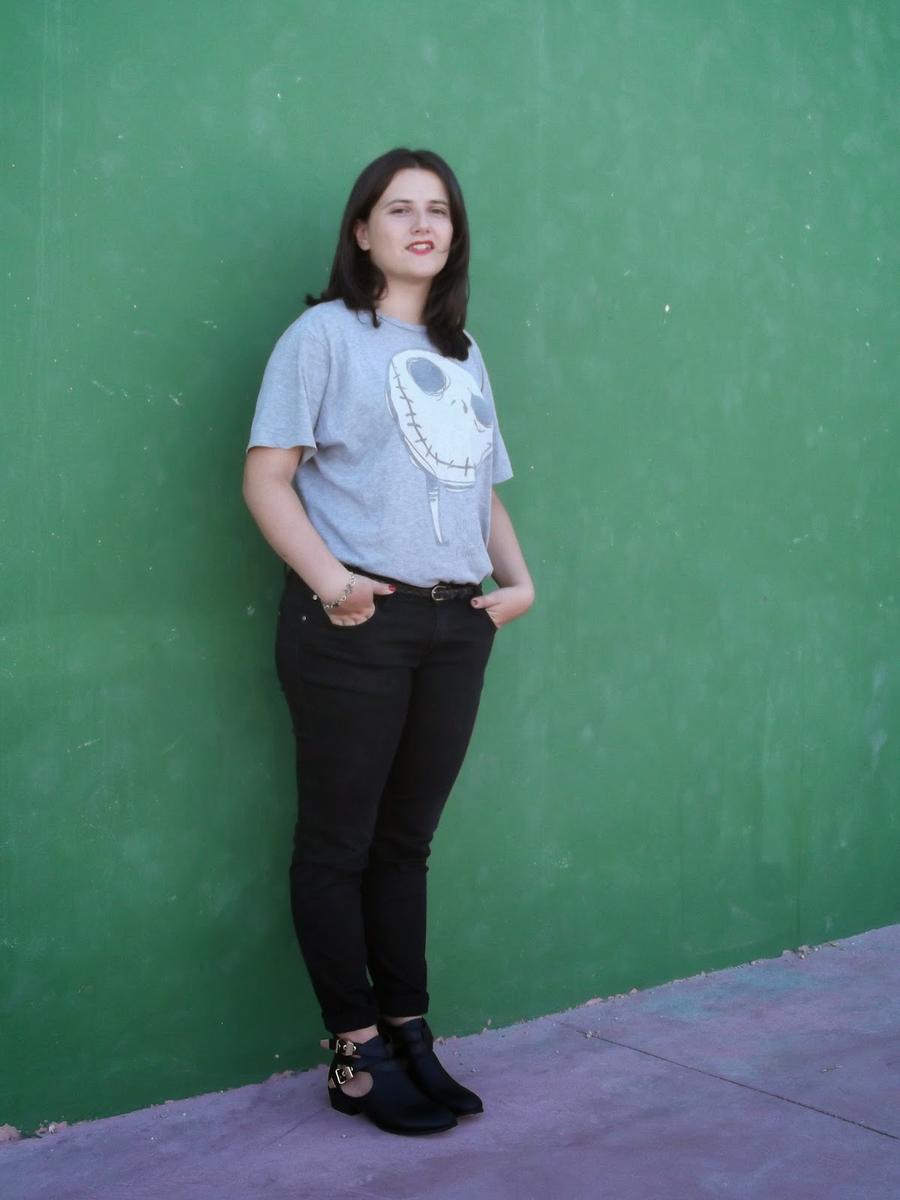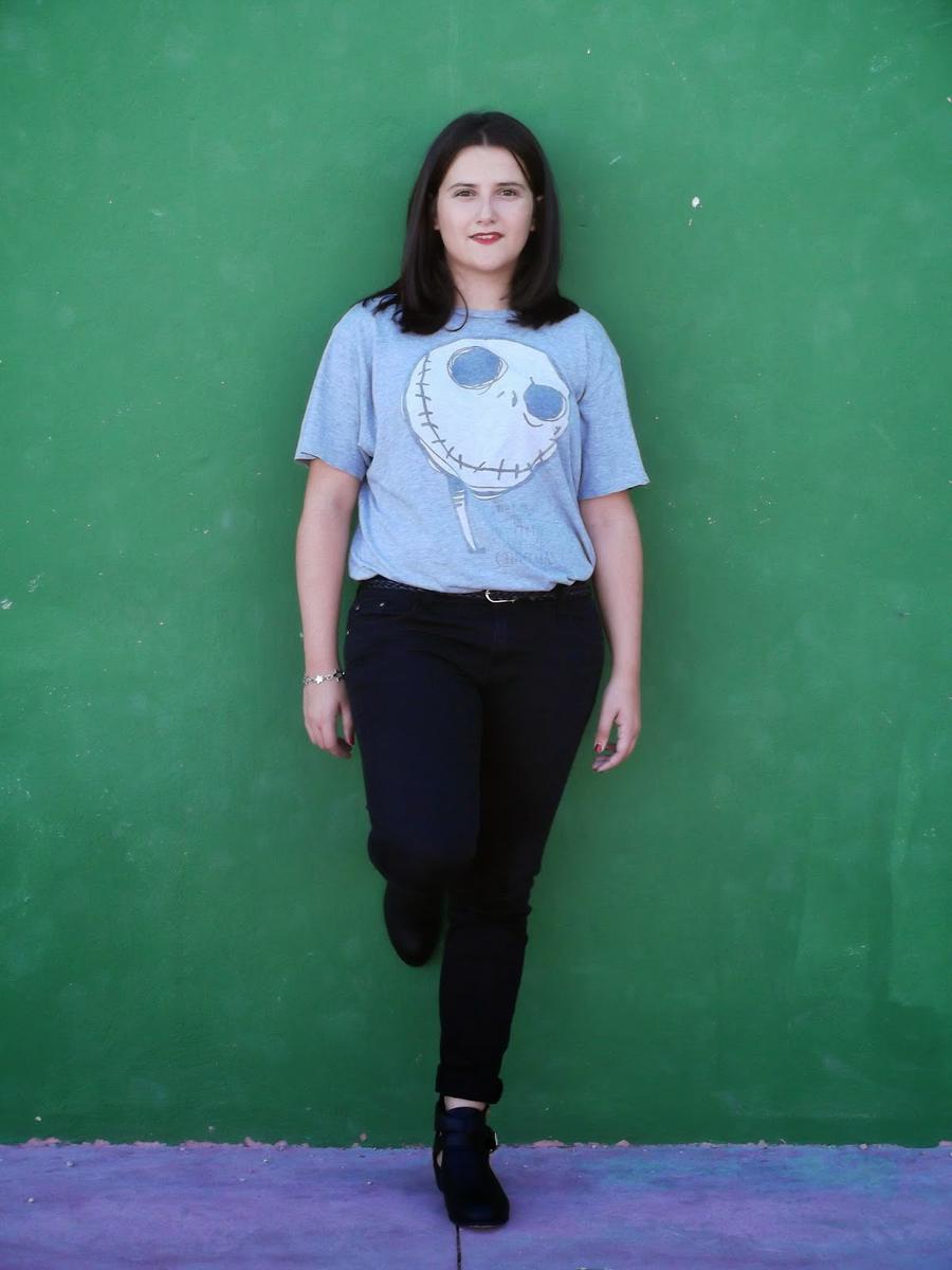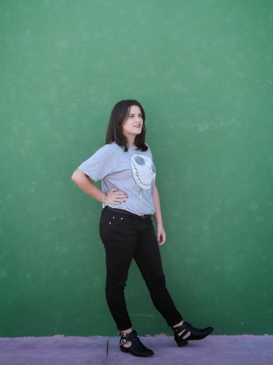 Para darle un toque más divertido quise combinarla con una camiseta estampada en la misma línea anterior.