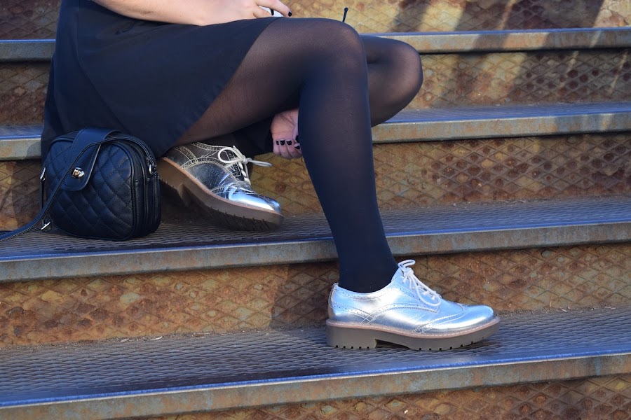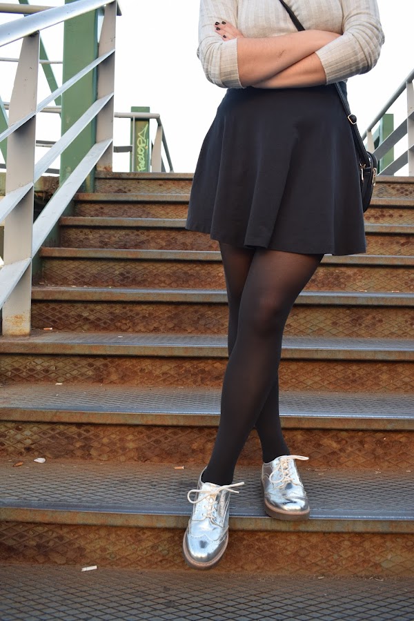 La camiseta es nueva, la compré en Bershka y me encanta por lo bien que queda. Es bastante cortita aunque en estas fotos no lo podáis apreciar bien. La combiné con mi falda skater favoritísima, tiene tanto trote que ya estoy buscando alguna que le sustituya pero aún no la he encontrado. Para que fuese un #outfit #cienporcienyo tendría que llevar unas medias plumetti pero quería dejarle todo el protagonismo a estos PRECIOSOS zapatos. ¿Son bonitos verdad? Me los compré en Bershka también esta temporada y estoy #muyinlove.