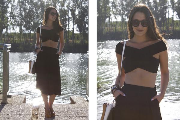 Lo combiné con este top de hombros descubiertos que tanto me gusta por su diseño en forma de x.