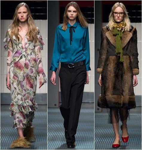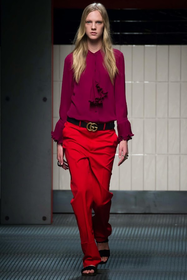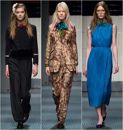 Vemos sobre todo el toque femenino en los vaporosos vestidos, y el masculino en trajes de chaqueta o abrigos estilo militar. ¿Qué te parece esta colección?