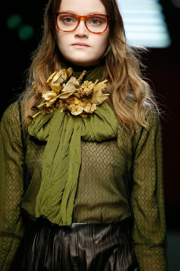 En primer lugar la colección se caracteriza por un gran toque retro, vintage, que nos recuerda otra época. Estampados de flores, geométricos, y detalles militares en cuellos y mangas de abrigos, así como adornos de lazos y flores denotan un toque romántico.