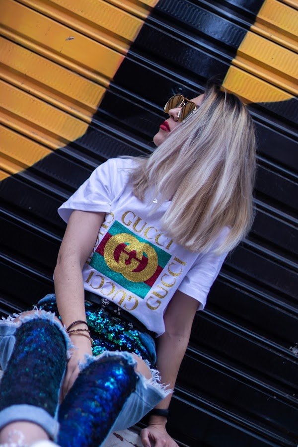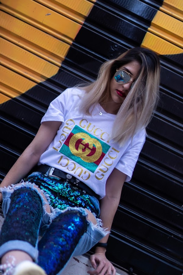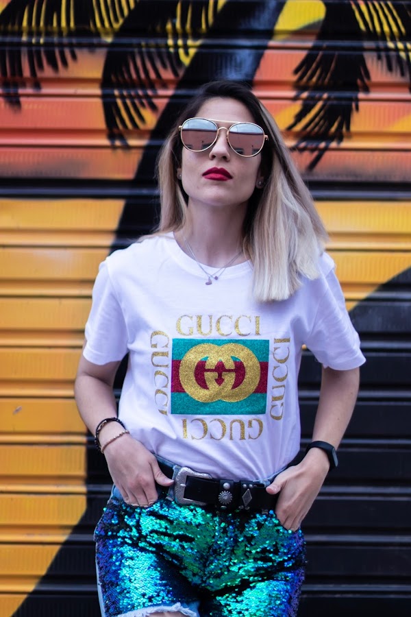 Hoy no tengo solo un protagonista, hoy tengo dos super protas! El primero, una camiseta súper chula con estampado de Gucci de GOALSHOP. Llevaba tiempo queriendo una con un estampado de Gucci y esta es súper chula con letras doradas.