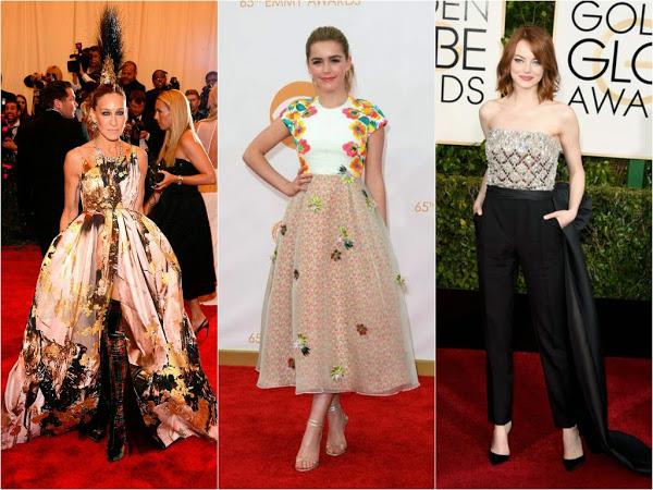 Tres "fashionistas" que siempre apuestan por algo distinto: Sarah Jessica Parker (Giles), Kiernan Shipka (Delpozo) y Emma Stone (Lanvin)