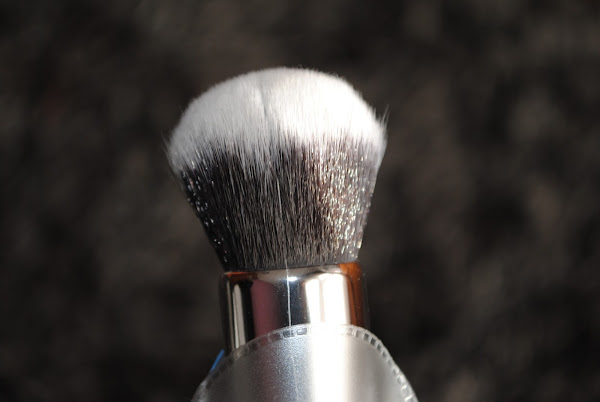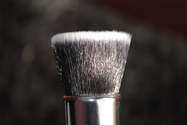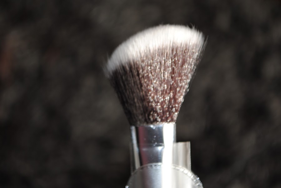La siguiente en este set es una brocha para hacer el contorno o el contouring. Es una brochita cortada en diagonal para poderla ajustar perfectamente en el pómulo. Hay que tener cuidado con ella porque cogen bastante producto y hay que ir trabajando poco a poco. Tengo que decir que no es de mis favoritas de este set... quizá porque estas brochas angulares me gustan más tupidas.