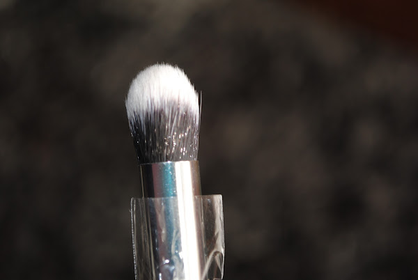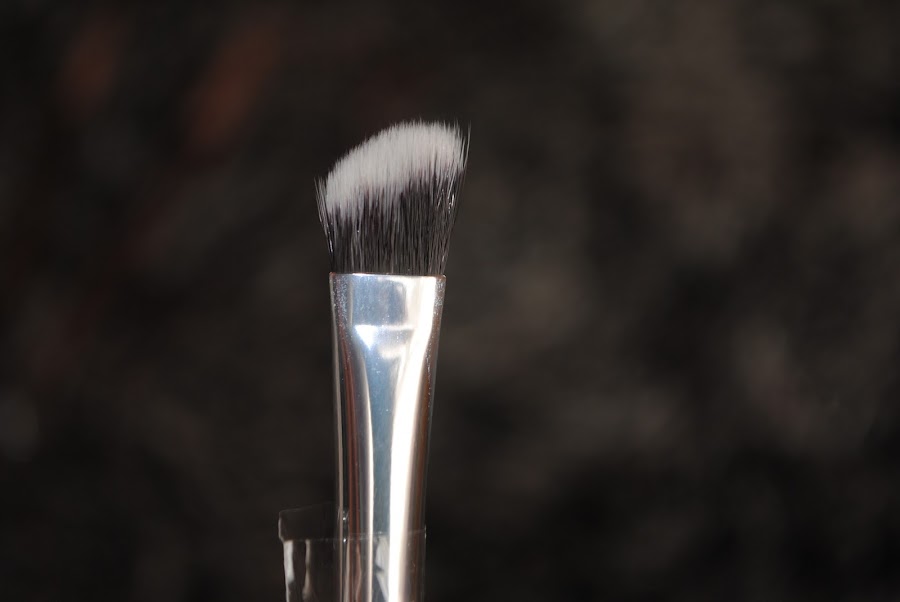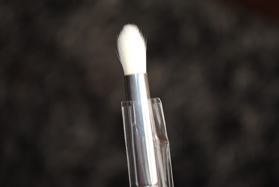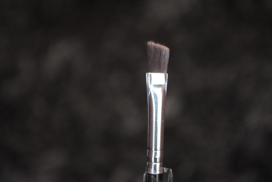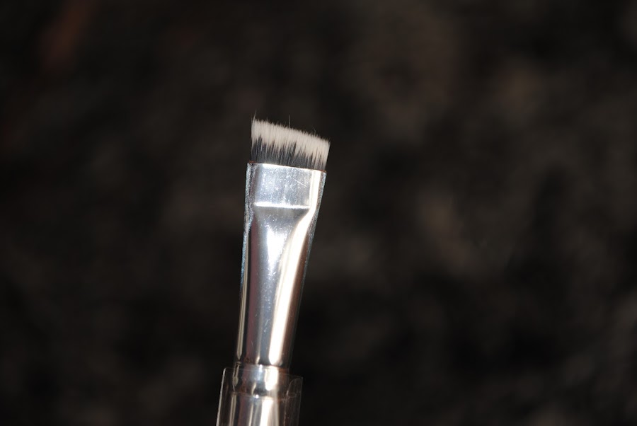 Un pincel muy básico es el angular para ojos. Dependiendo de su tamaño y dureza puede ser utilizado para cejas o para crear líneas muy finas en el ojo como eyeliner con sombra o cutcrease. Como las anteriores es bastante blandito así que no creo que me sirva para las cejas pero ya tenía ganas de un pincel con el que pudiese hacer bien el cutcrease.