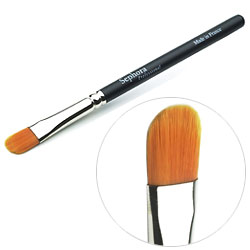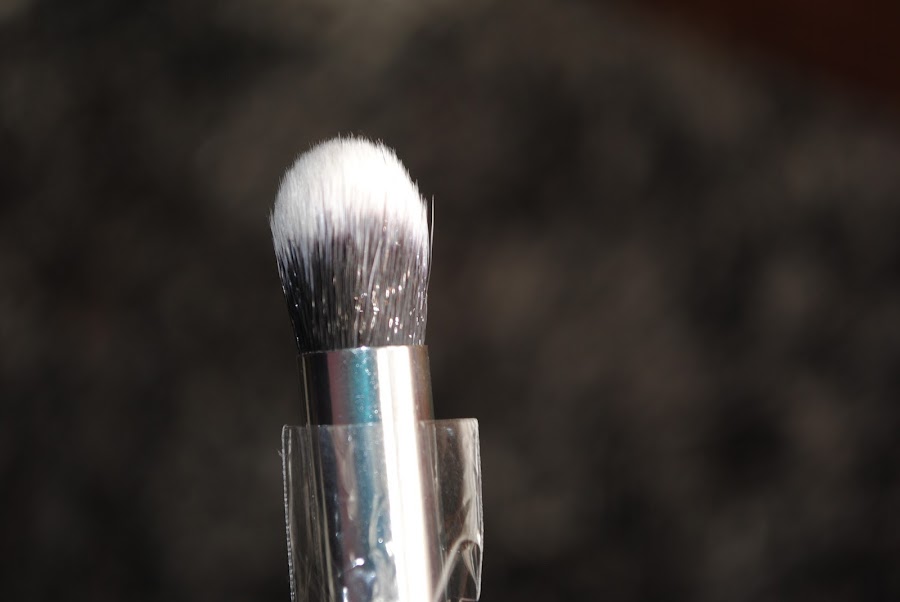 Para delinear de forma no precisa el ojo o realizar pequeñas líneas de color con las sombras, tanto para el párpado superior como para el inferior por el tamaño de la brocha tenemos esta brocha con punta en forma de lanza. Por el ángulo de la foto parece más una brocha para difuminar pero os prometo que tiene más punta de la que parece. Aunque es un poco grande podría servir para trabajar las sombras en el pliegue.