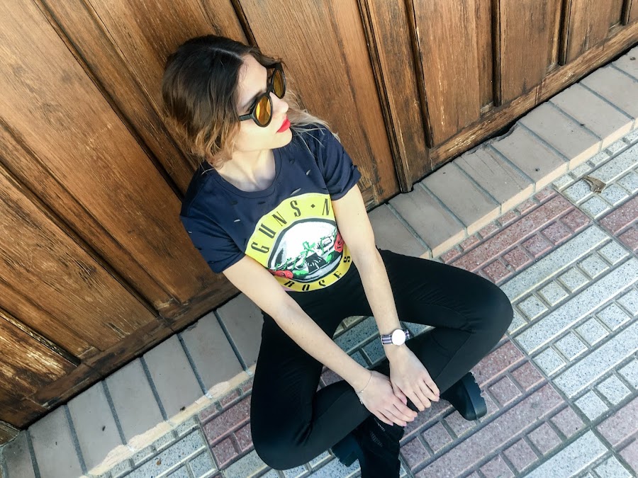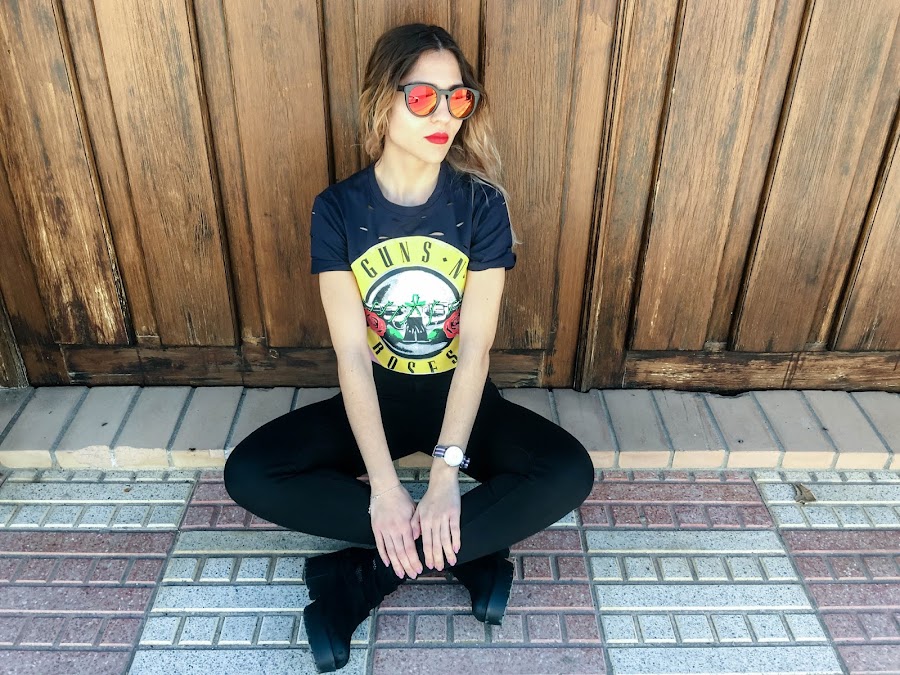 Un look muy cañero con una camiseta que me súper encaaaanta de YOSHOP. El estampado de esta camiseta ya la habréis visto en muchas camisetas porque este año están triunfando, así que enhorabuena a todos los fans de este grupo, jaja!
