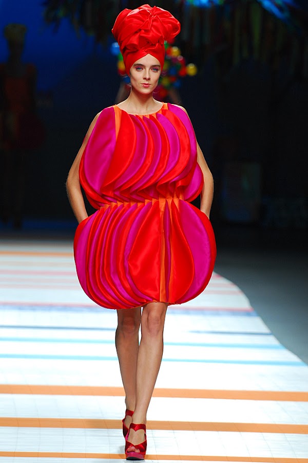 Si me equivoco me corregís, pero quien sabe jugar con el volumen a la perfección es Agatha Ruiz de la Prada. No hay desfile que no nos sorprenda con una pieza a lo grande, con volantes, con ligeros pero grandes movimientos en los hombros. Diría que el volumen y la forma es lo que Agatha siempre tiene muy presente. Ana Locking también en 2013/2014 jugó en MBFW con volúmenes.