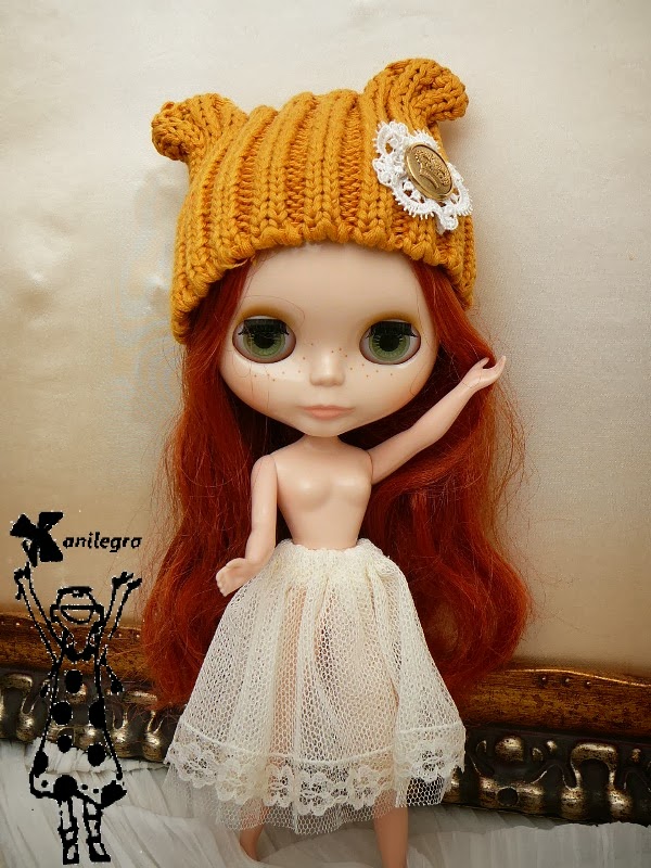 Y aquí teneis a mi muñeca Blythe con su gorro de de orejitas de oso ,