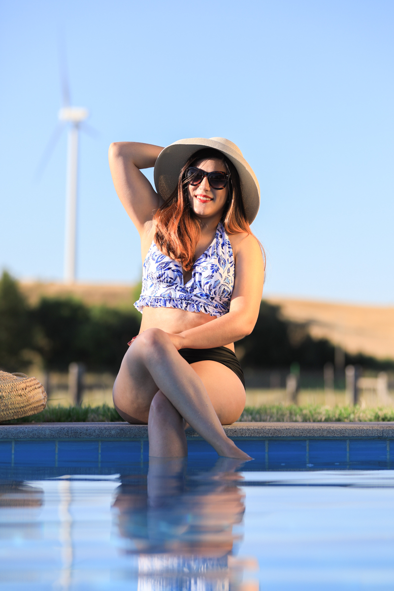 Si ya en el post anterior de outfit os conté que me había salido de mi zona de confort por elegir un modelo de vestido con el que nunca antes me había atrevido, con este bikini sumamos y seguimos. No es por la prenda en particular, sino por el hecho en sí de que yo saque un bikini deliberadamente. Lo he hecho antes dos veces (una vez en la piscina y otra como recuerdos del verano), pero generalmente no me siento cómoda posando en bañador.