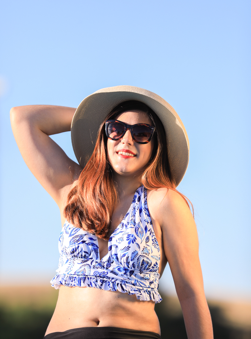 Tiene gracia porque, de todas las fotos que hicimos ese día, esta es, sin duda, mi favorita. No una en la que se vea el bikini de frente, no una en la que salga posando con el agua. No. Esta. No sé si es por el azul del cielo, el color de mis uñas o la apreciación del estampado del bikini, pero esta imagen resume todo lo que quiero contar en este post.