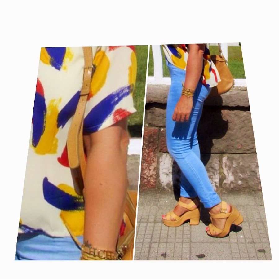 Unas fotos rápidas antes de recoger al peque en el autobús. Tan sólo quería mostraros los colores de mi nueva blusa, son super alegres y favorecen un montón con la piel morena. Su estampado recuerda a brochazos de pintura o a un dibujo abstracto, según lo vea cada uno ¿no?.
