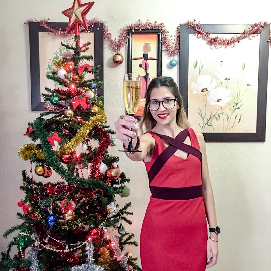 En el post de hoy, os enseño el look que elegí para Nochevieja. Este año, he dejado atrás el "brilli brilli" de otros años y he apostado por un vestido muy elegante. Por supuesto, de color rojo, que dicen que da buena suerte empezar el año con alguna prenda de este color, y con tiras cruzadas en el escote de color morado. Es de 21 BOTONES, una tienda local que tiene cosas preciosas y en la que pronto podréis comprar online!