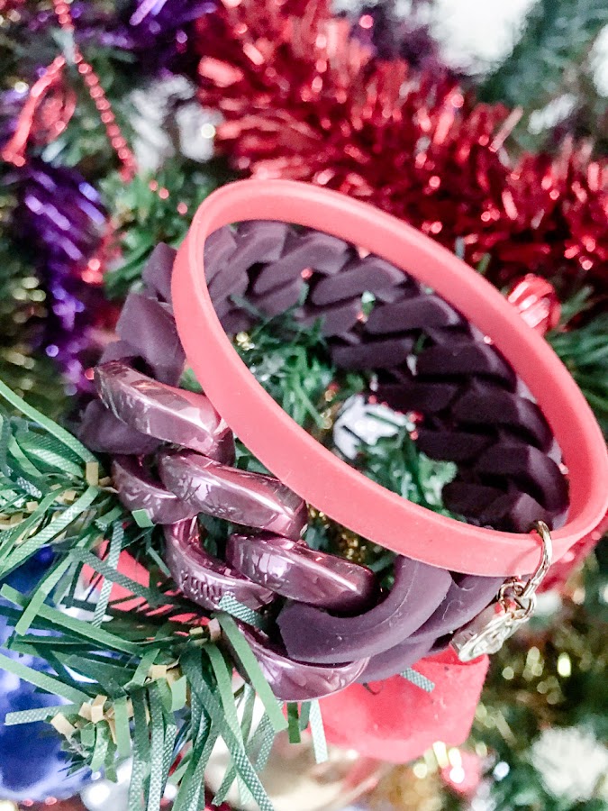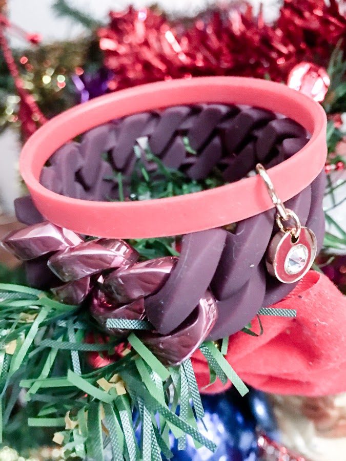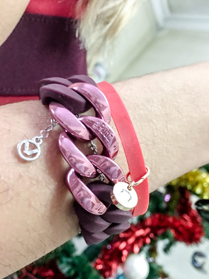 As complements, I have opted for bracelets of THE RUBZ of the same colors, one of links in purple and a red bracelet, finer and with a golden ornament.