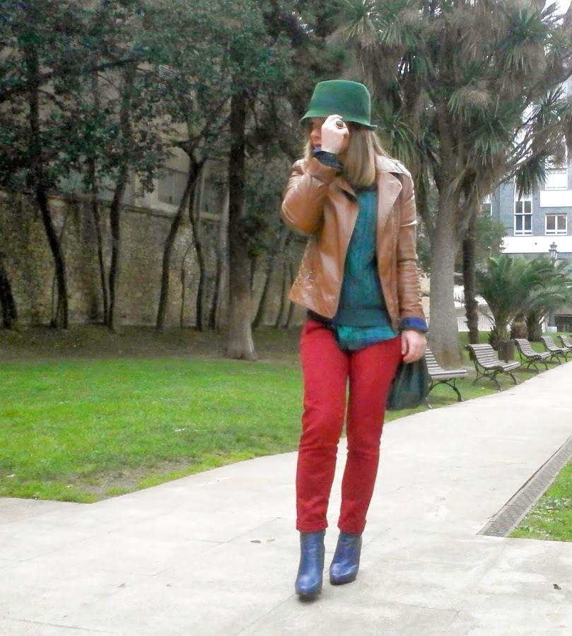 La combinación de colores es una de mis favoritas, verde con granate, en éste caso es clarito, y toques de azul marino. Ésta vez me atreví con la cazadora color camel a romper la combinación y es que pienso que es un color que combina con todo ¿no?.