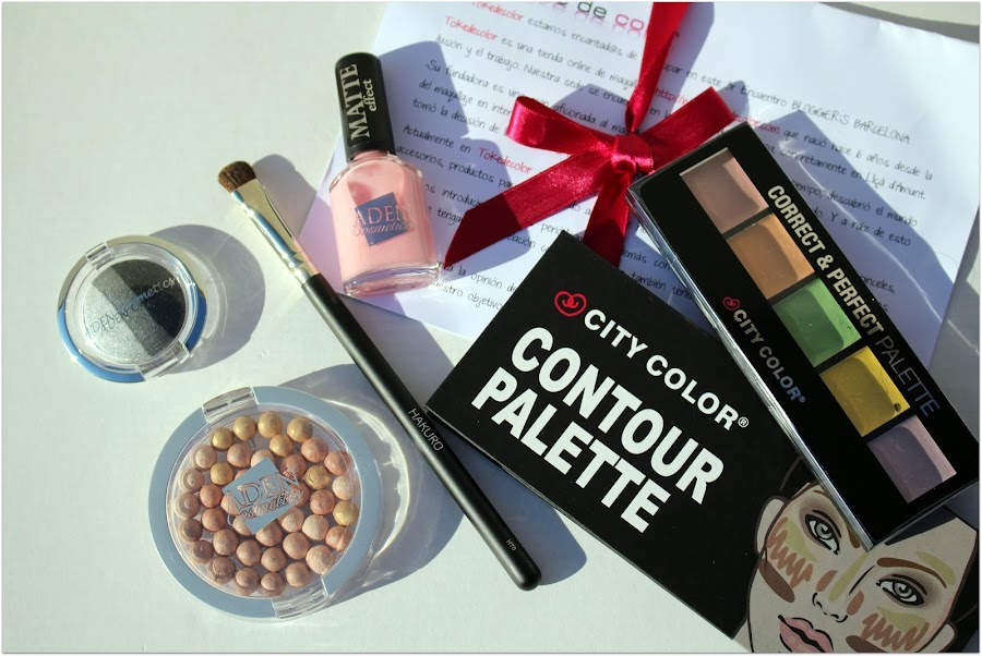 La tienda online Toke de Color nos obsequió con una selección de productos, como estas paletas de contour y de correctores de City Color, la sombra tricolor, los polvos en perlas y la laca de uñas de Aden, y la brocha para sombras de Haruko. ¡Qué bien se han portado!