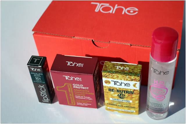 Tahe también estuvo con nosotras, y nos regaló esta caja que contenía estos cuatro productos: un labial, una mascarilla capilar concentrada, un sérum antiarrugas y una agua micelar. También es una marca que no conocía, pero con este detalle que han tenido con nosotros, la pillo con muchas ganas!