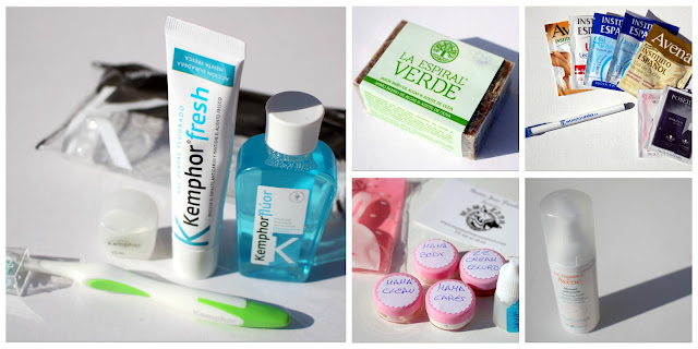 Otras marcas colaboradoras fueron Kemphor (que nos regaló un kit dental de viaje), La Espiral Verde (a mi me tocó un jabón sólido, pero había más productos), Farmacia Gal (que nos regaló un producto de Avene), Instituto Español (que nos regaló unas muestras de sus productos y un bolígrafo) y Mama Zebra (que también nos regaló muestras hechas por ella).