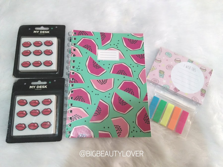 Cositas de escritorio. Conseguí un 2x1 en varios de estos productos. Los pins para corcho los amo. No los desempaque porque me los quiero llevar así para México y estrenarlos allá. Cuadernos he comprado montones y los use para los distintos cursos que hice. Este va a ser utilizado para un curso online de fotografía que estoy haciendo :)